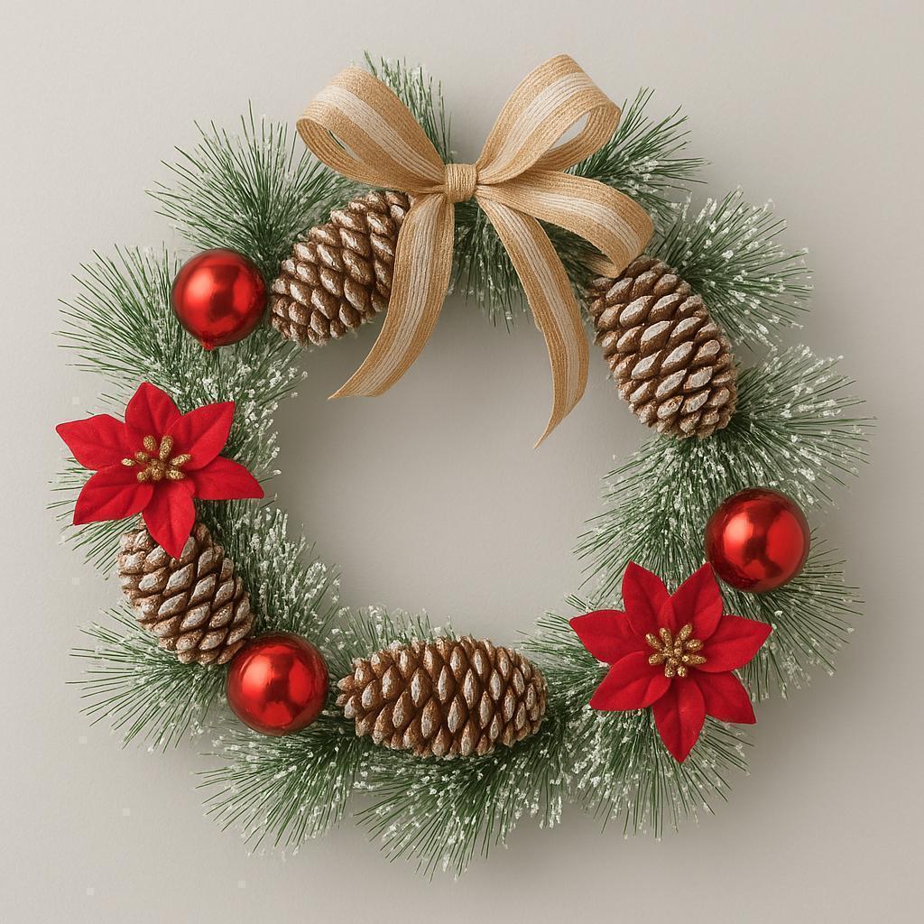 - Design inspirado no universo natalino, possivelmente com laços, flores ou elementos tradicionais