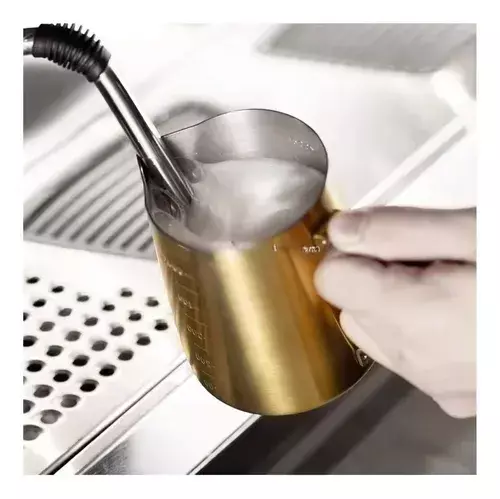 A Leiteira de Aço Inox Dourada 350ml é elegante, prática e resistente, ideal para preparar e servir leite, cappuccinos, chocolates quentes e outras bebidas. Produzida em aço inoxidável de alta qualidade, garante durabilidade, fácil higienização e um acabamento sofisticado na cor dourada, que agrega charme ao cantinho do café ou à cozinha. Seu formato ergonômico proporciona firmeza no manuseio e precisão no servir, sendo também perfeita para espumar leite em máquinas de café expresso.