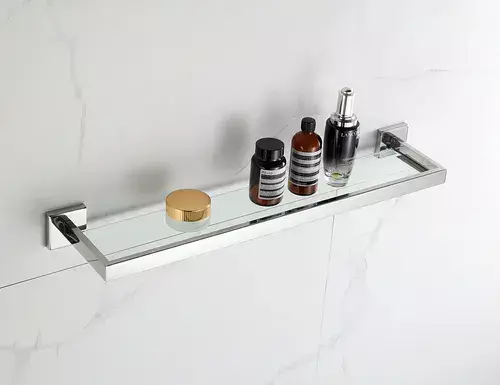 Seu vidro temperado de 38,5 cm oferece resistência, segurança e fácil limpeza, enquanto a estrutura metálica cromada ou pintada garante durabilidade e um visual contemporâneo. A prateleira suporta diversos tipos de objetos, como cosméticos, perfumes, toalhas, itens decorativos e utensílios, otimizando o espaço de forma elegante.